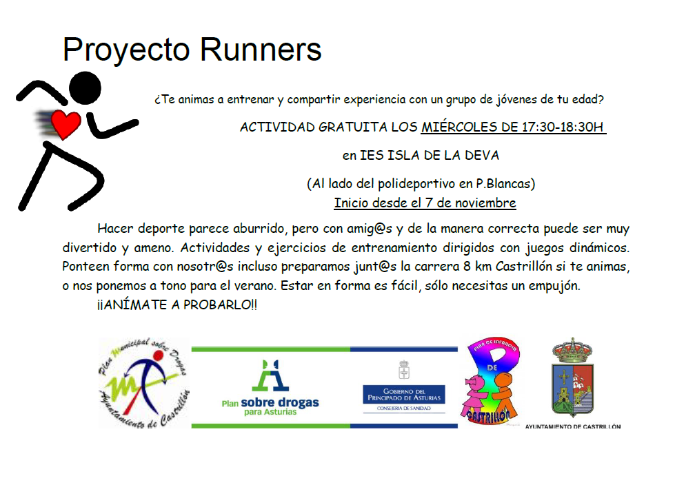Todavía estáis a tiempo, si queréis empezar a correr, para poneros en forma o queréis incluso apuntaros a la carrerra, os esperamos los miércoles en el IES Isla de la Deva a las 17:30h.